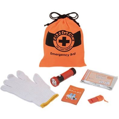 巾着x1 アルミシートx1 ホイッスルx1 軍手x1 防災のしおりx1 LEDライトx1