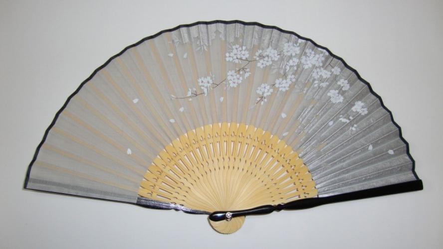 ”販促品 ノベルティ グッズ” 『綿扇子 白銀桜 婦人用柄』