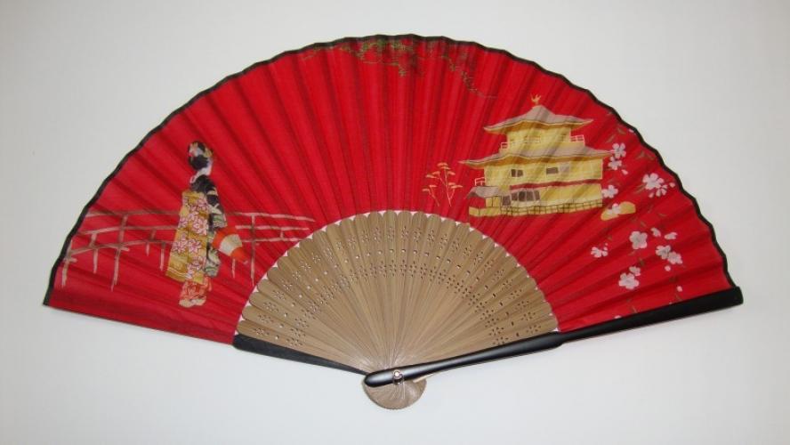 シルク扇子 金閣寺と舞妓はん 婦人用柄