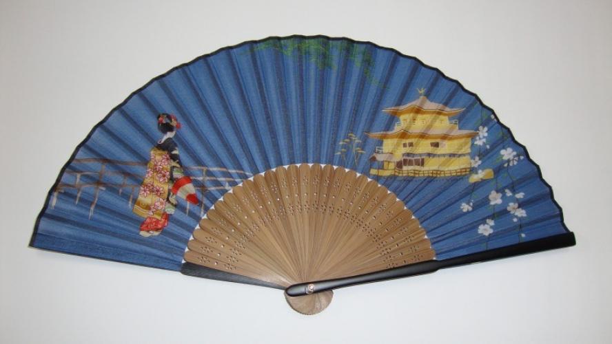 シルク扇子 金閣寺と舞妓はん 婦人用柄
