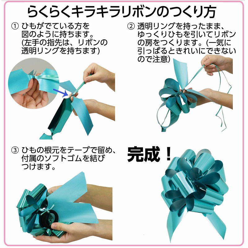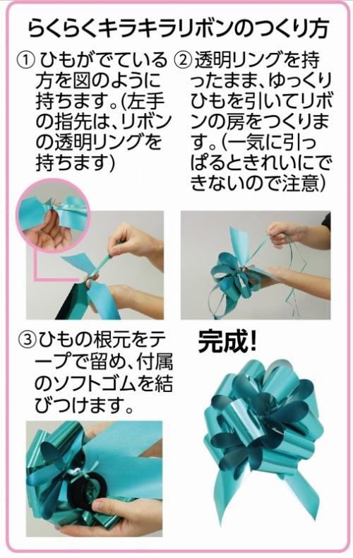 リボン:伸ばした長さ 約50×1330mm ソフトゴム:45mmリボン:PP、PET ひも:PP 透明リング:PVC