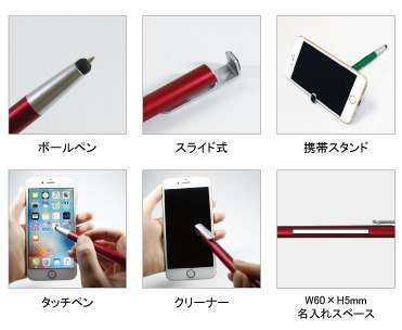 機能:携帯スタンド・タッチペン・ボールペン・クリーナー