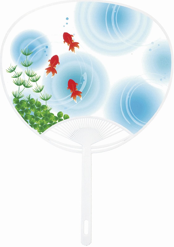 [片面1色名入・版代込] Gタイプうちわ 水草金魚 ※軽オフセット印刷