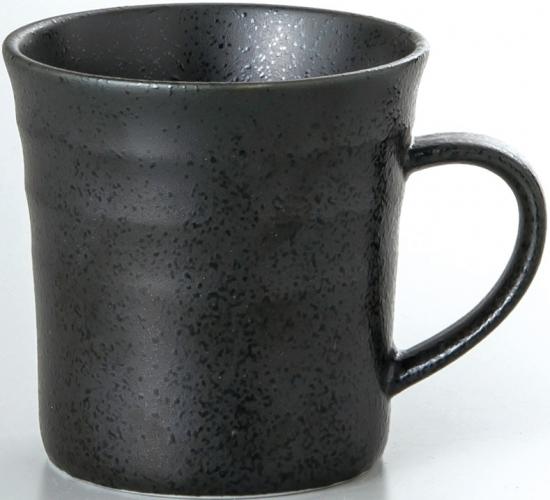 美濃焼 鳴門 反マグ 黒耀 マグカップ黒色 (個箱・名入れ代は、別途見積)