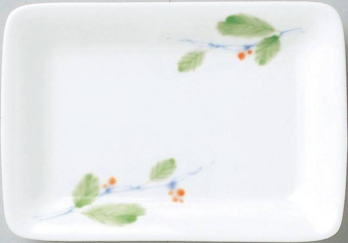 ”名入れ ロゴ入れ オリジナル” 『美濃焼 18cm長角皿_軽量Dia Ceram 赤い実 和 (個箱・名入れ代は、別途見積)』
