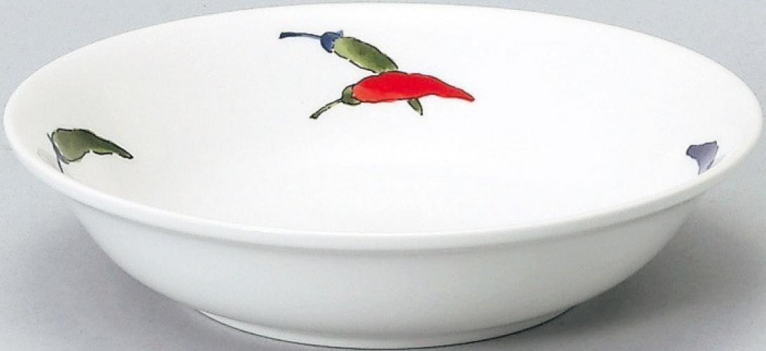 美濃焼 メタ14cm深皿_軽量Dia Ceram 唐辛子 洋 (個箱・名入れ代は、別途見積)