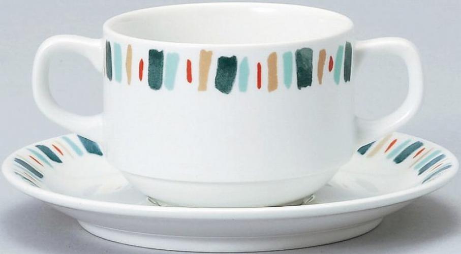 美濃焼 スタック両手碗_Dia Ceram グリーントクサ (個箱・名入れ代は、別途見積)