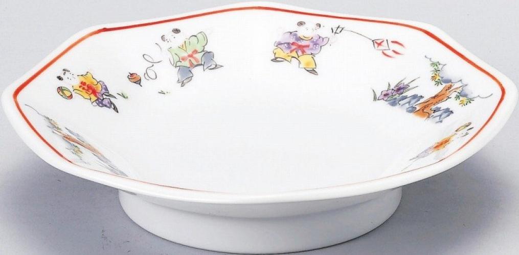 美濃焼 八角高台19cm皿_色絵唐子 (個箱・名入れ代は、別途見積)