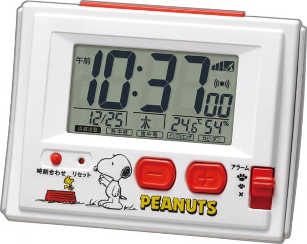 音量調節付(大/小/OFF)/12時間(午前・午後)/24時間表示切換式/カレンダー付(2099年12月31日まで表示可能)/温度表示付(-9.9〜50℃)/湿度表示付(20〜95%)/手動時刻合わせボタン付/残照機能ライト付