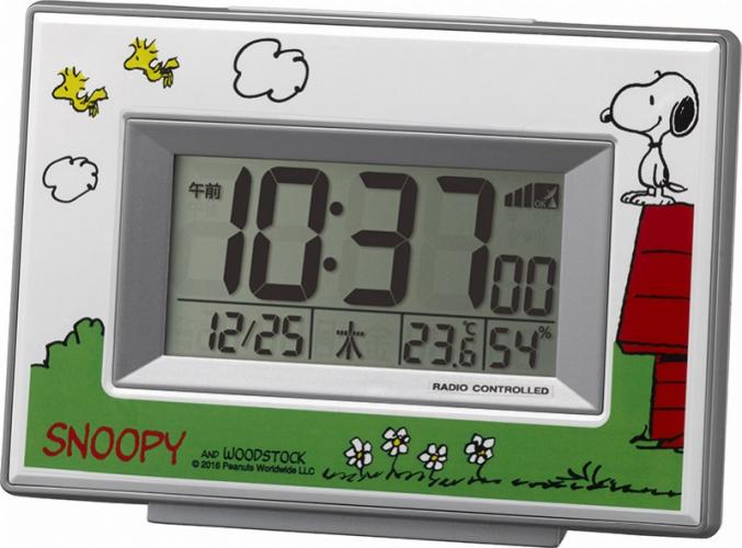 電波OFF機能/電波サーチ機能/電子音アラーム/スヌーズ/アラームオートストップ/ライト(残照機能:2〜3秒)/12時間(午前/午後)表示/24時間表示切換式/カレンダー表示(2099年まで表示可能)/温度表示(-9.9〜50℃)/湿度表示(20〜95%)/?2016 Peanuts Worldwide LLC