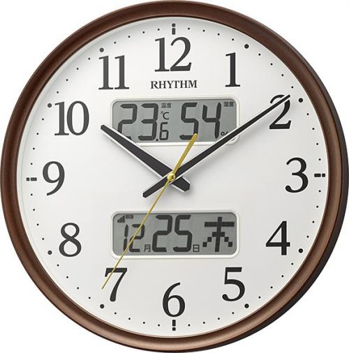 記念品等の名入れ承ります。名入れ代、包装代等お見積り致します。コチコチ音がしない連続秒針の液晶表示付電波掛時計です。大きな文字板で、時間も温湿度もカレンダーも見やすくなっています。