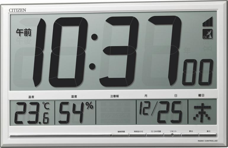 カレンダー表示(2099年12月31日まで表示可能)/温度表示(-9.9〜50℃)/湿度表示(20〜95%)/環境目安表示(「食中毒」「カビ・ダニ」表示タイプ)/9セグ表示/掛置兼用