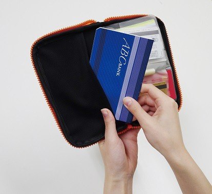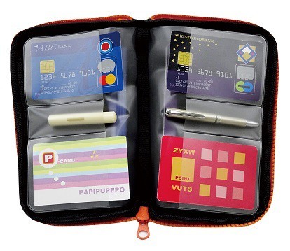 通帳やカードなどの貴重品をPVCポケットで仕分けれるバンクポーチ