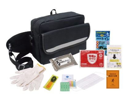 ショルダーとウエストの2WAYタイプの収納バッグの防災セットです。