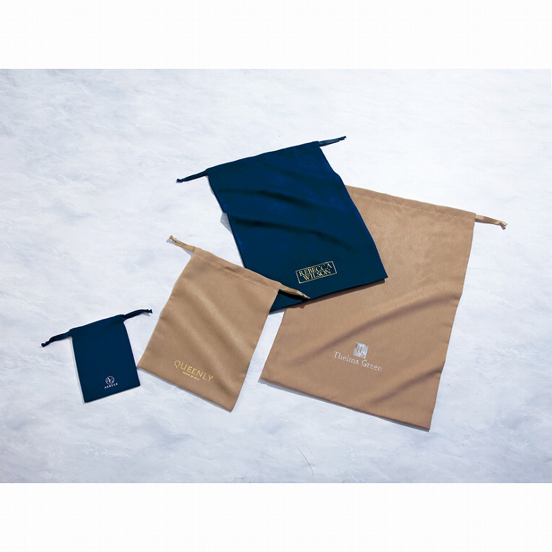 なめらかなスウェード調生地と、光沢のある内側のサテンが高級感を演出。ロゴを入れることで、更に特別感がアップします。