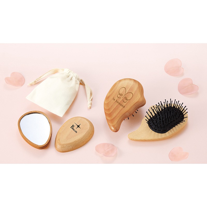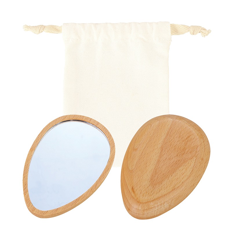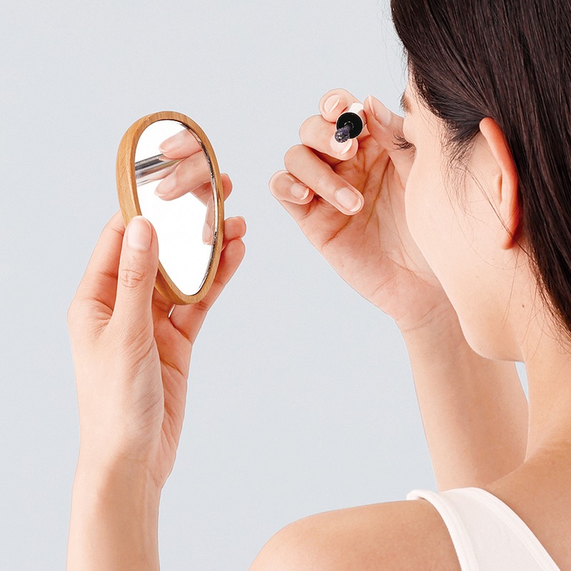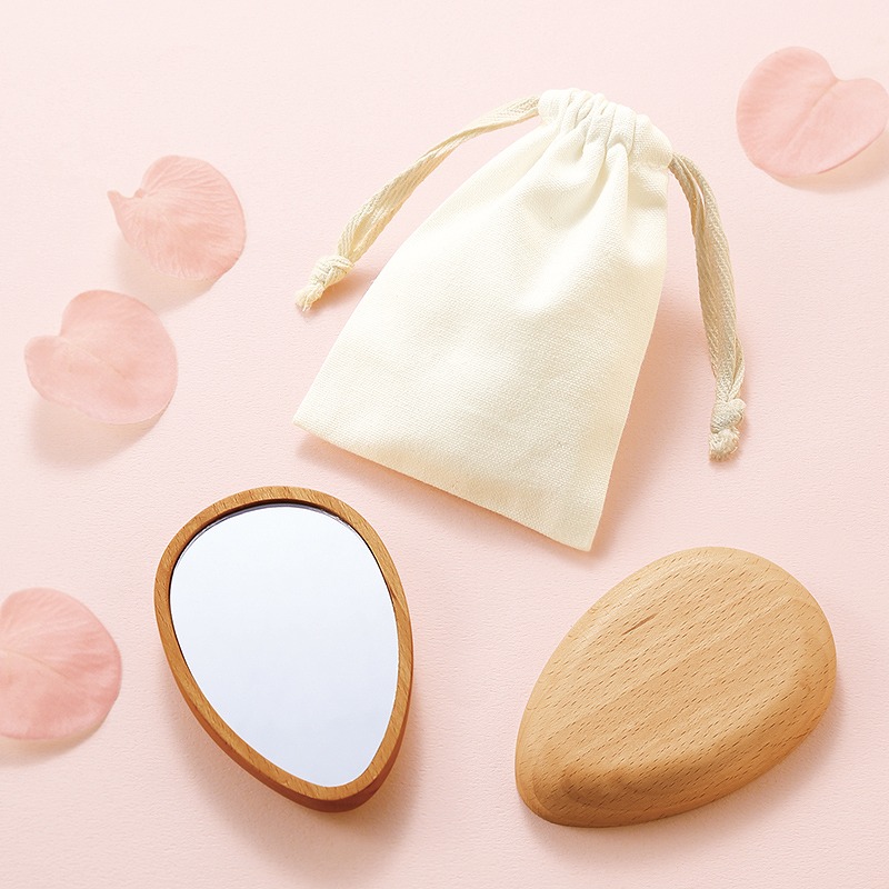 見た目も触り心地からも温かみを感じる天然のブナを使った携帯しやすいミニミラー。