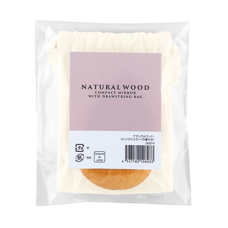 ナチュラルウッド・コンパクトミラー(巾着付き)