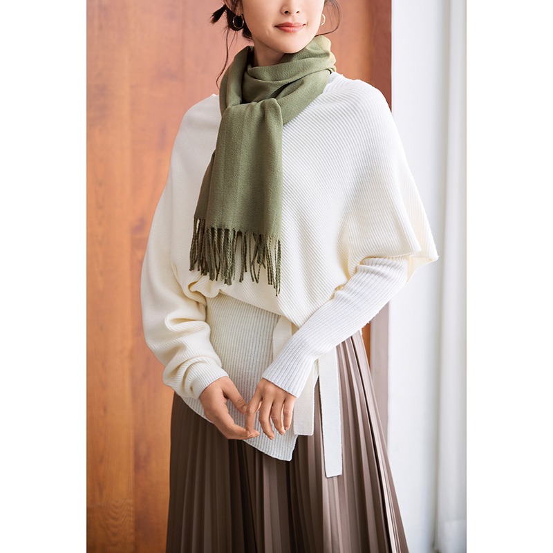 触れるたび心地よさを感じられる滑らかさと上質感ある見た目は、まさにカシミヤのようなクオリティ。男女使いやすいマフラータイプです。