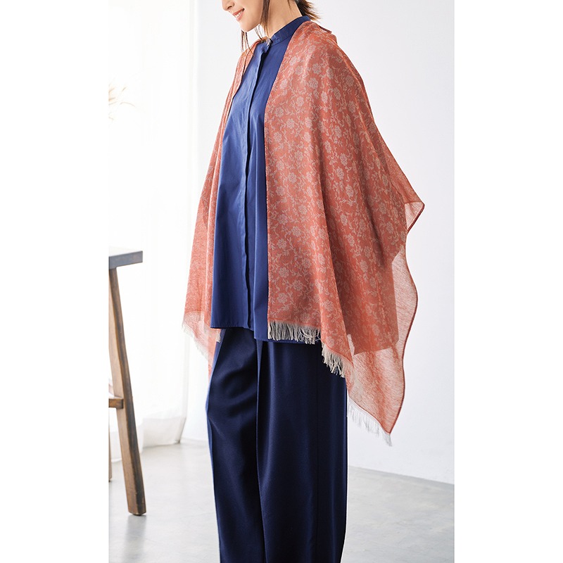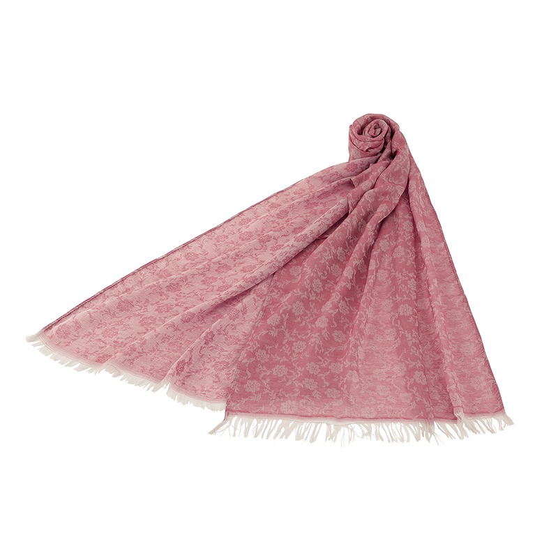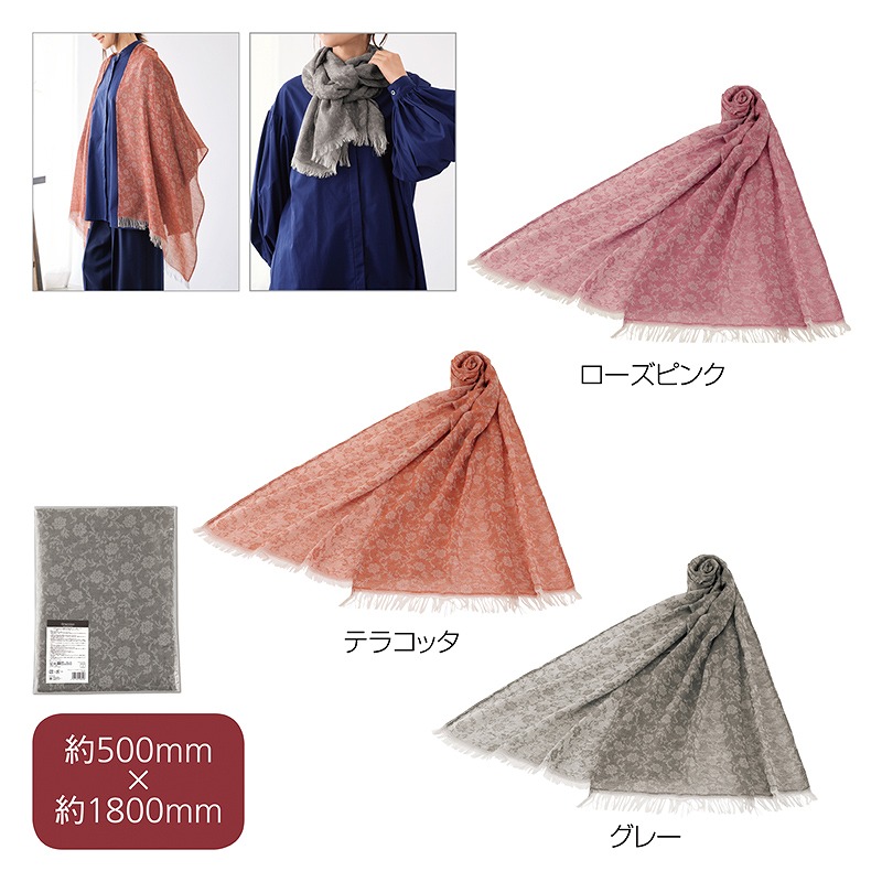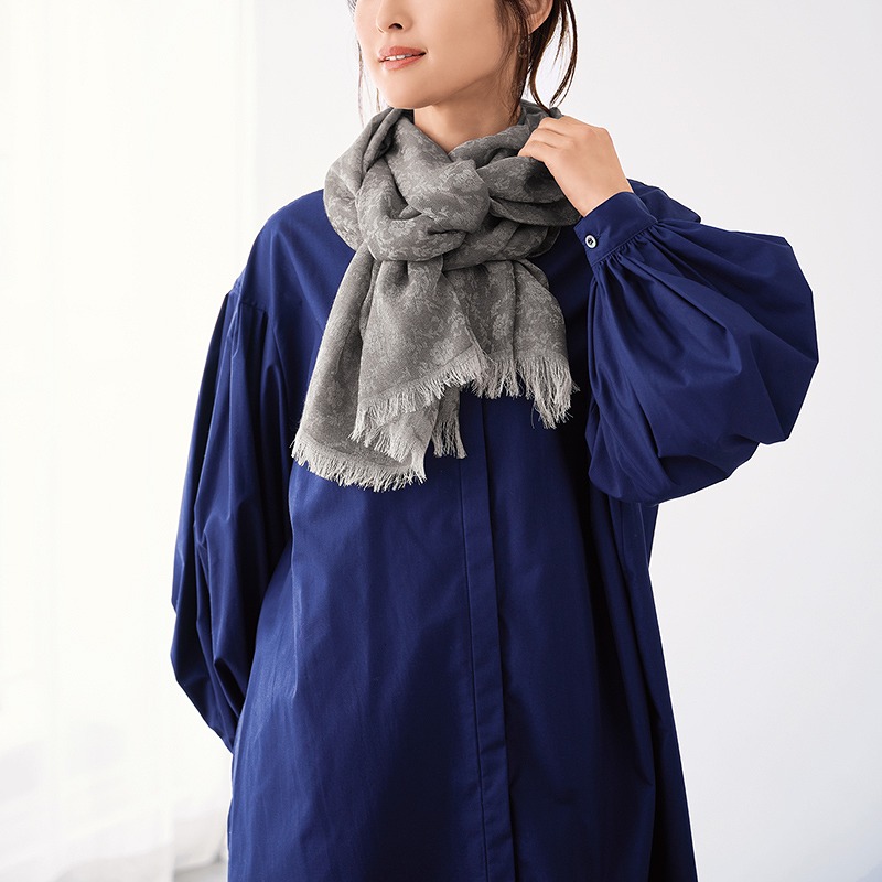 エレガントな柄をジャガード織で表現。シックなくすみカラーが大人の魅力をより引き立てる上品なストール。