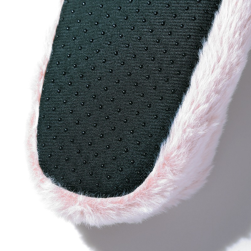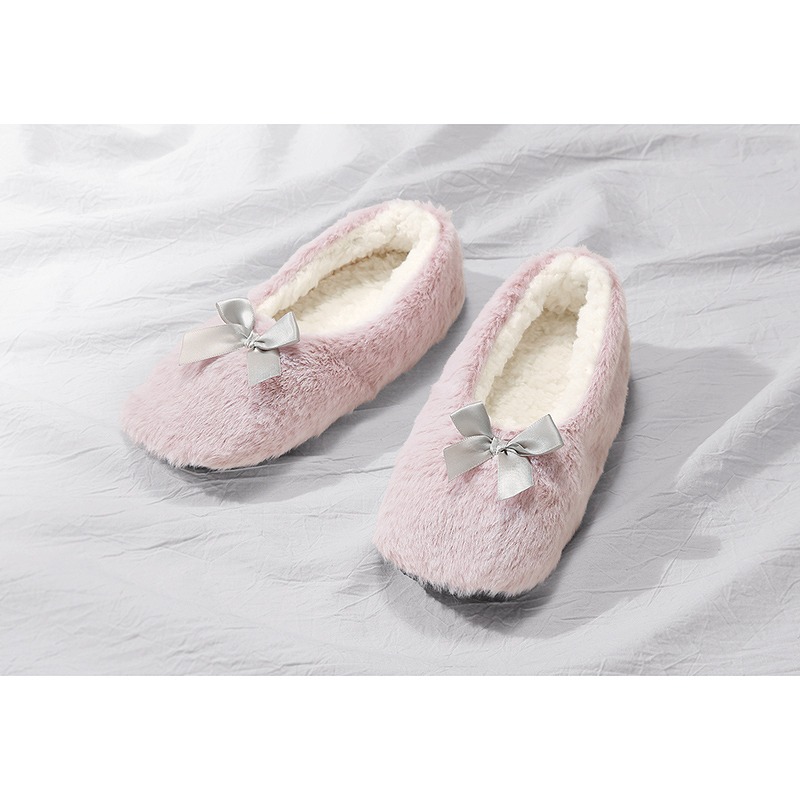 エコファー&ボアで見た目も履き心地も温かく癒されるルームシューズ。シックな色とリボンで大人かわいい印象に。