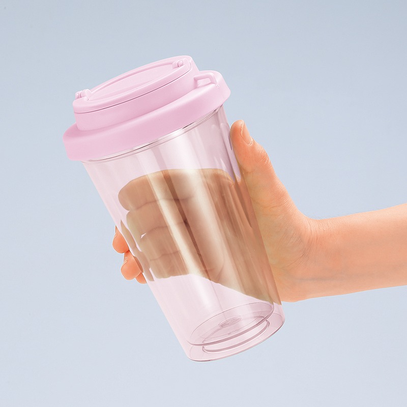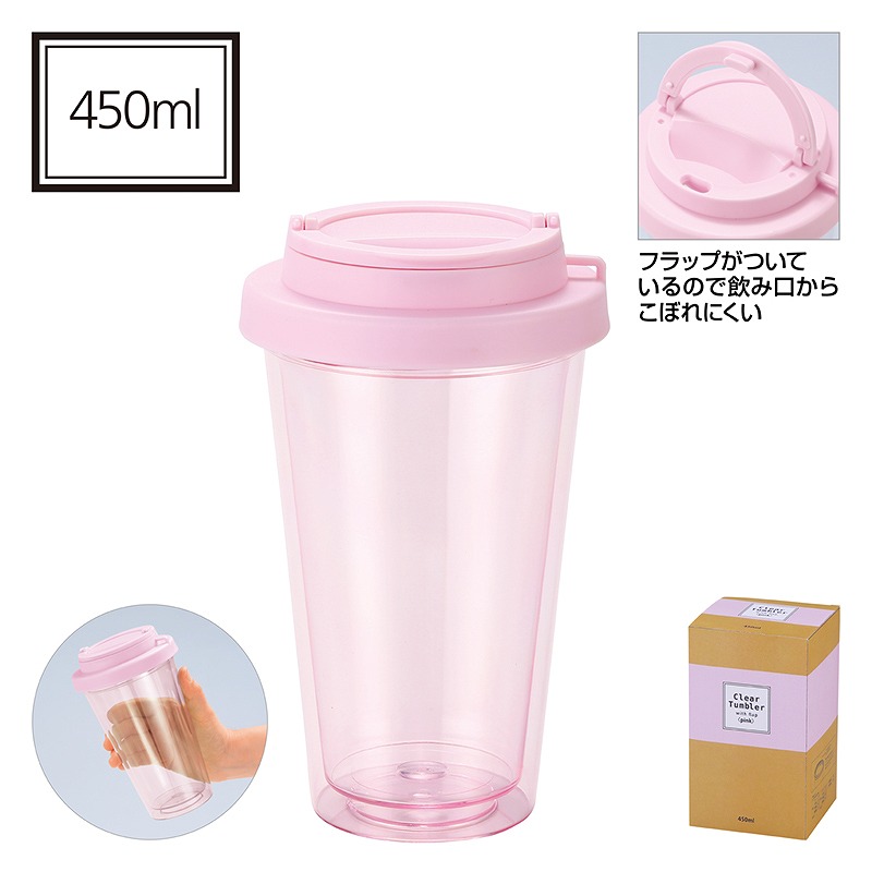 フラップ付き二重構造クリアタンブラー(ピンク)