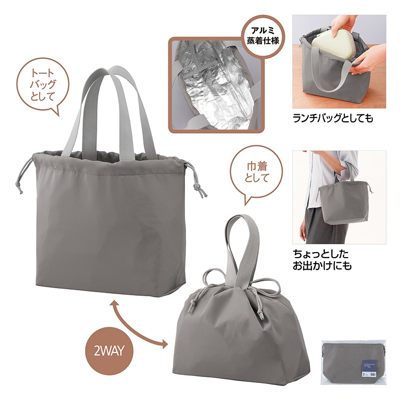 ”名入れ ロゴ入れ オリジナル” 『保冷温巾着バッグ(グレー)』