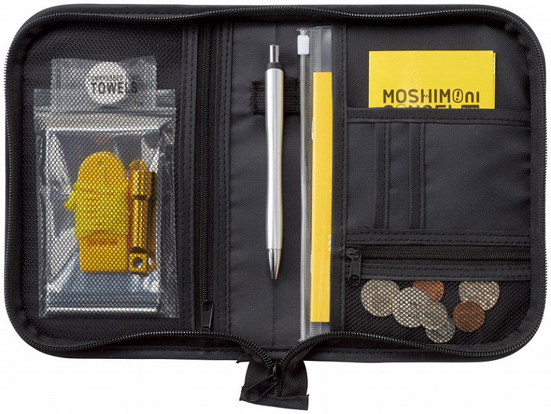 セット内容/ポーチ・ジッパーポーチ(90x190mm)・圧縮タオル(200×200mm)・アルミシート(1400×700mm)・LEDライト・A6ノート・ボールペン・ホイッスル・防災ブック、ライト/LED1灯式、ボタン電池4個付(ライト用)