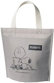 シンプルトーンのスヌーピーアイテム。 小物が入れられる嬉しいポケット付き。 ランチバッグに最適な商品です。
