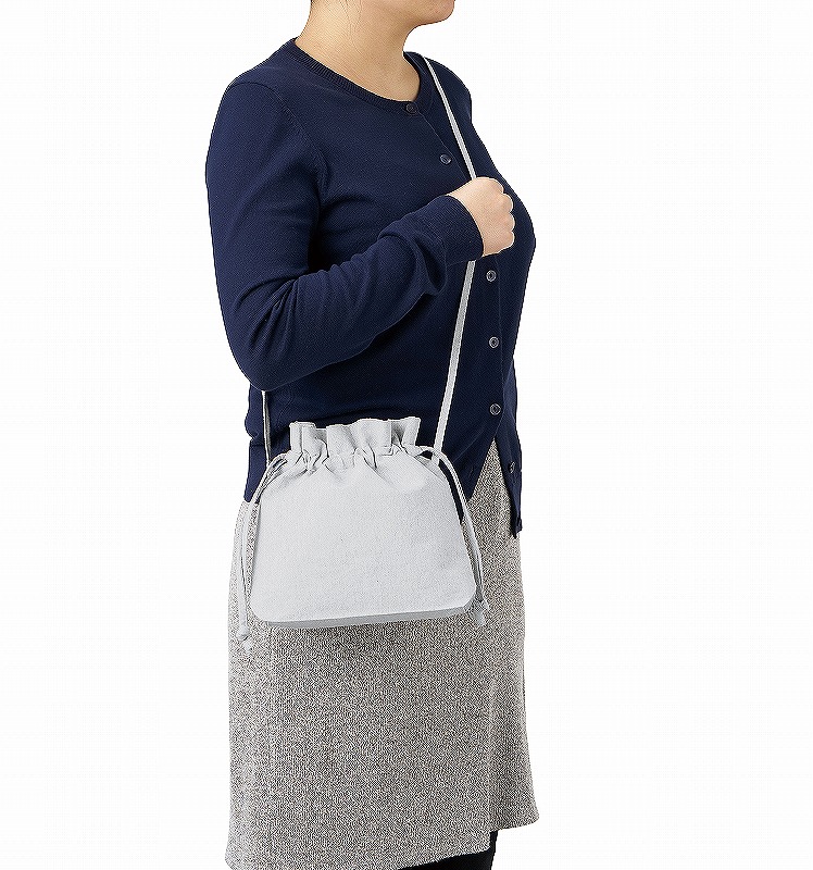 シャンブリック巾着ショルダーバッグ サックスブルー