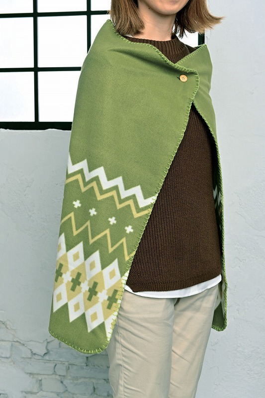 ひざ掛けはもちろん、ボタンを留めると肩掛けにもなる大きめの2Wayブランケット。