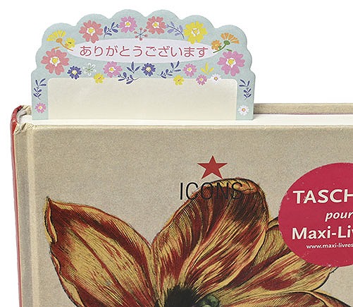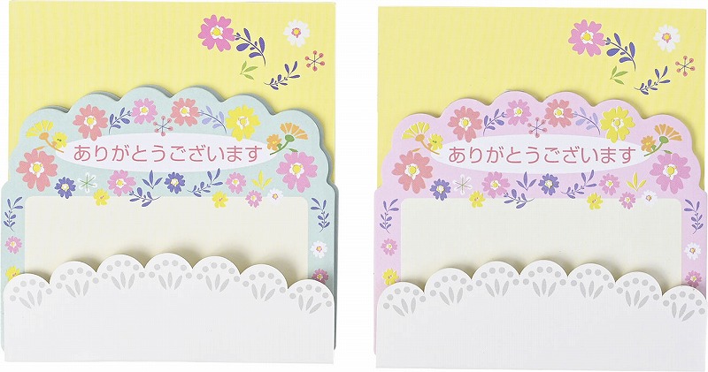 「ありがとうございます」の言葉を添えた、貼ったり、立てたり、挟んだり いろいろと使えるメモふせんです。