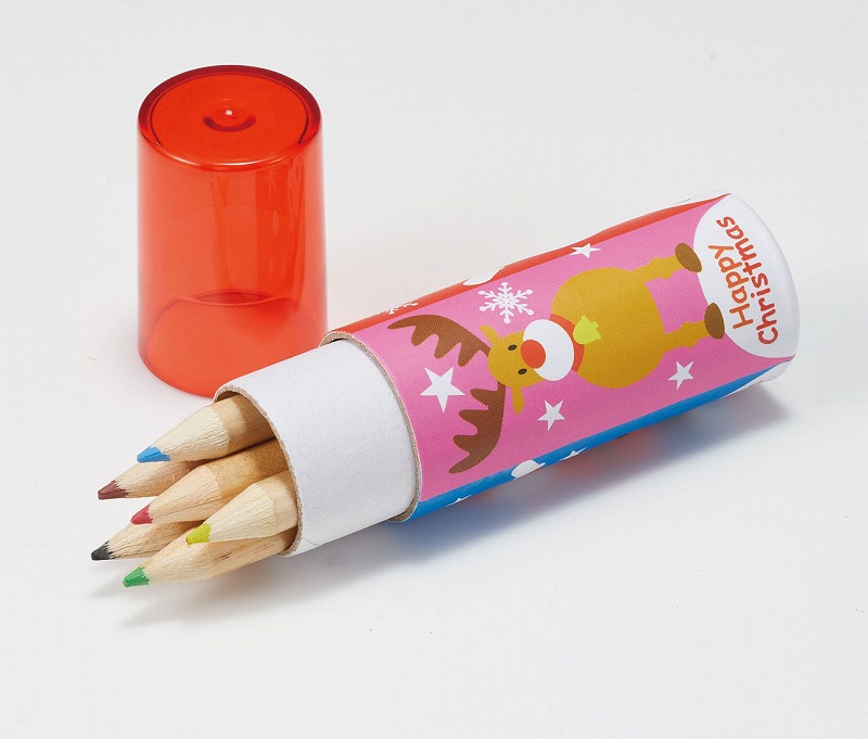 かわいいクリスマス柄の円筒ケースに色鉛筆が入っています。