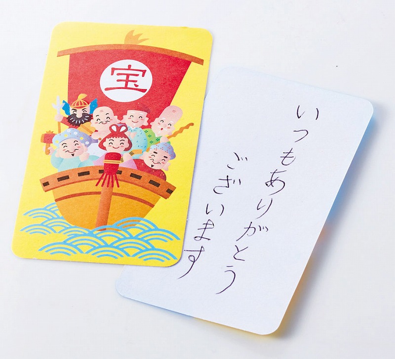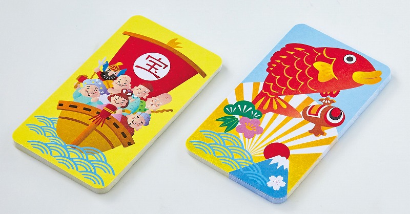 チャック付のプリントOP袋に縁起ものがプリントされたメモ用紙30枚入っています。