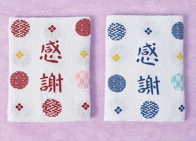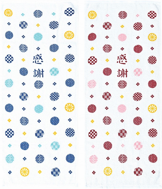 縁起の良い丸小紋がプリントされたフェイスタオルに感謝の気持ちを込めて。