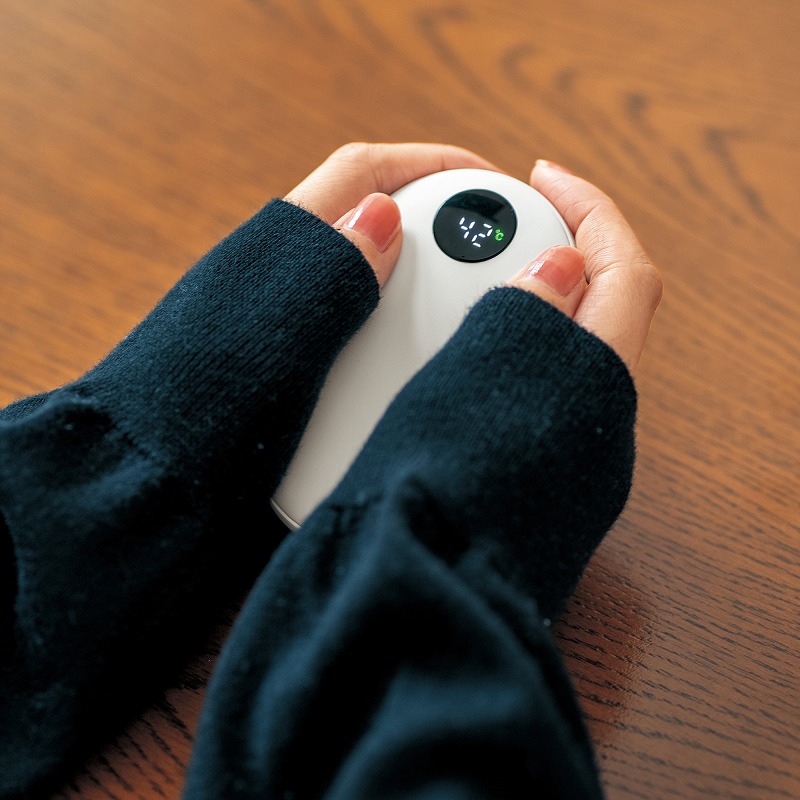普段はモバイルバッテリーとして、寒い時期はあったかカイロとして使用できます。温度は42℃、47℃、52℃から選択可能。