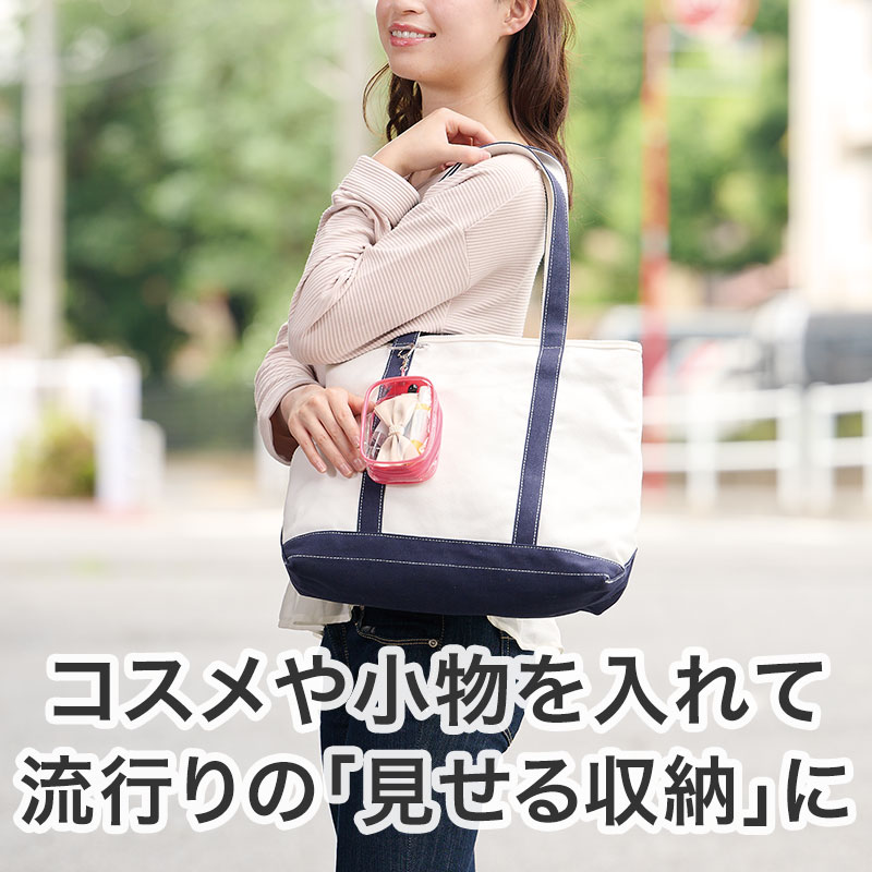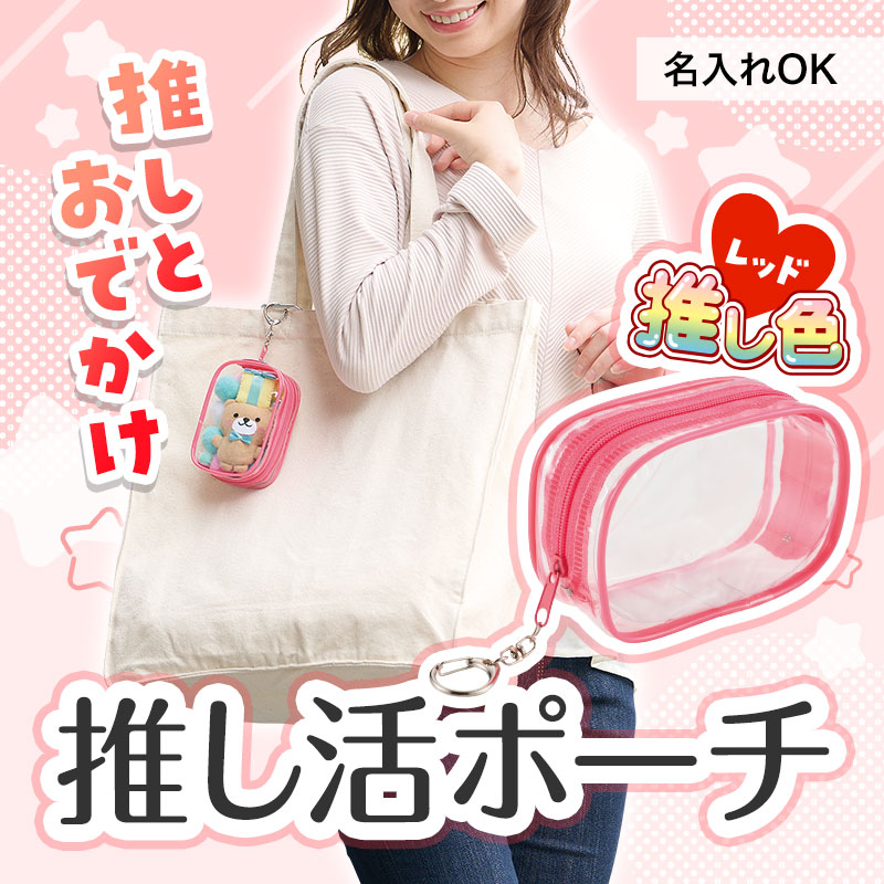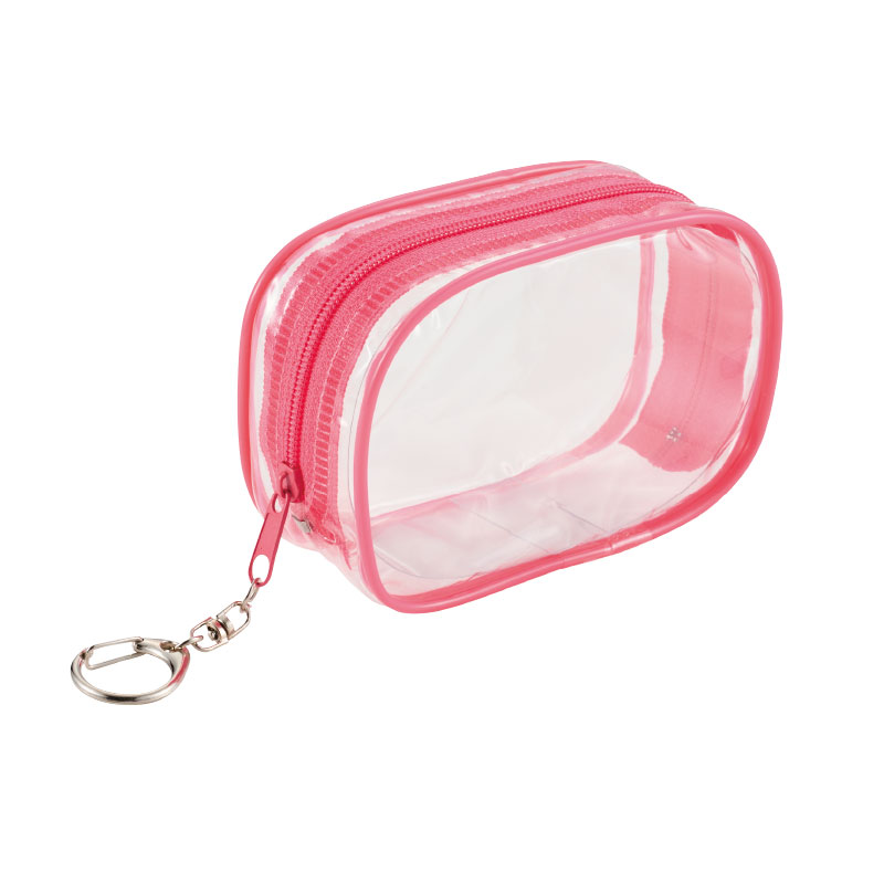 ”販促品 ノベルティ グッズ” 『カラモ クリアミニポーチキーホルダー レッド』