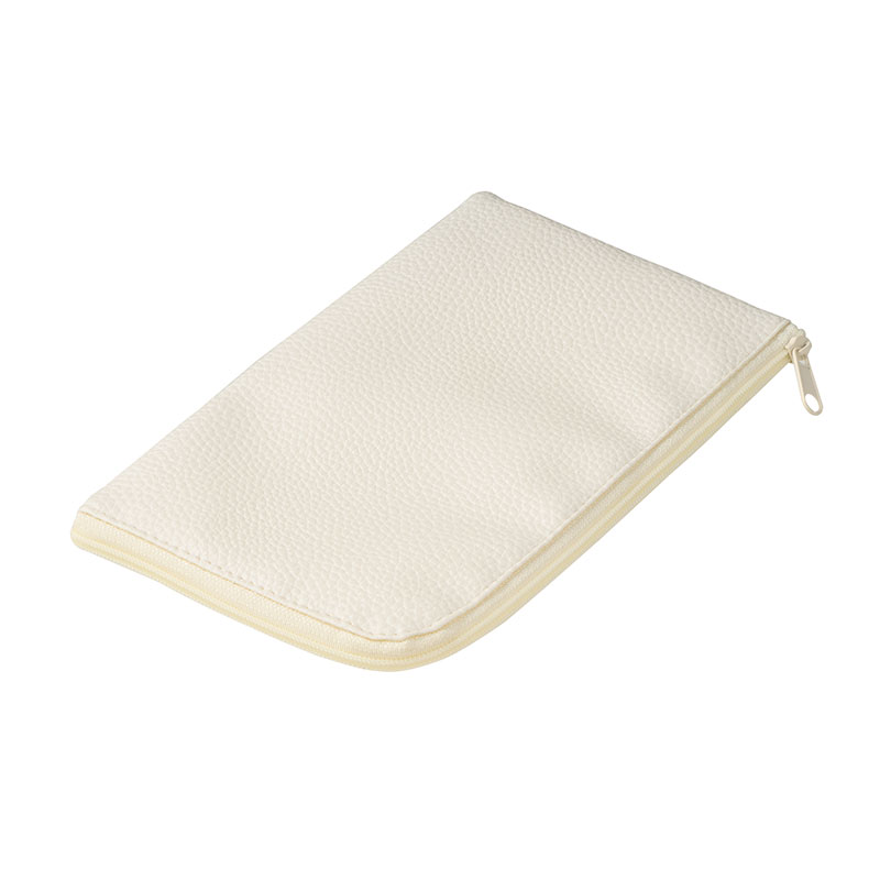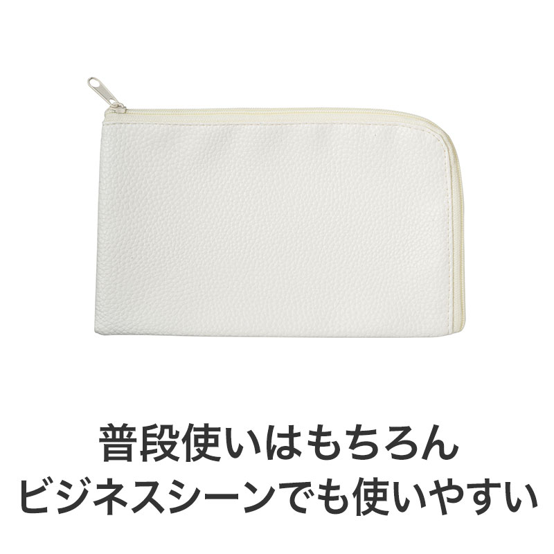 ”名入れ ロゴ入れ オリジナル” 『カラモ レザー調L字ファスナーポーチ ホワイト』