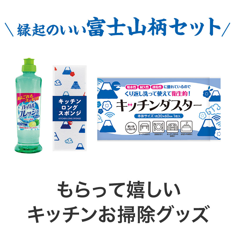 内容:ハーバルフレッシュコンパクト(グリーンライム) 250ml・キッチンロングスポンジ・キッチンダスター(1枚入) 各1