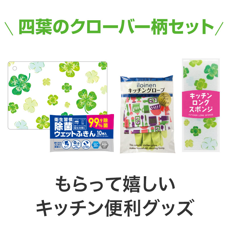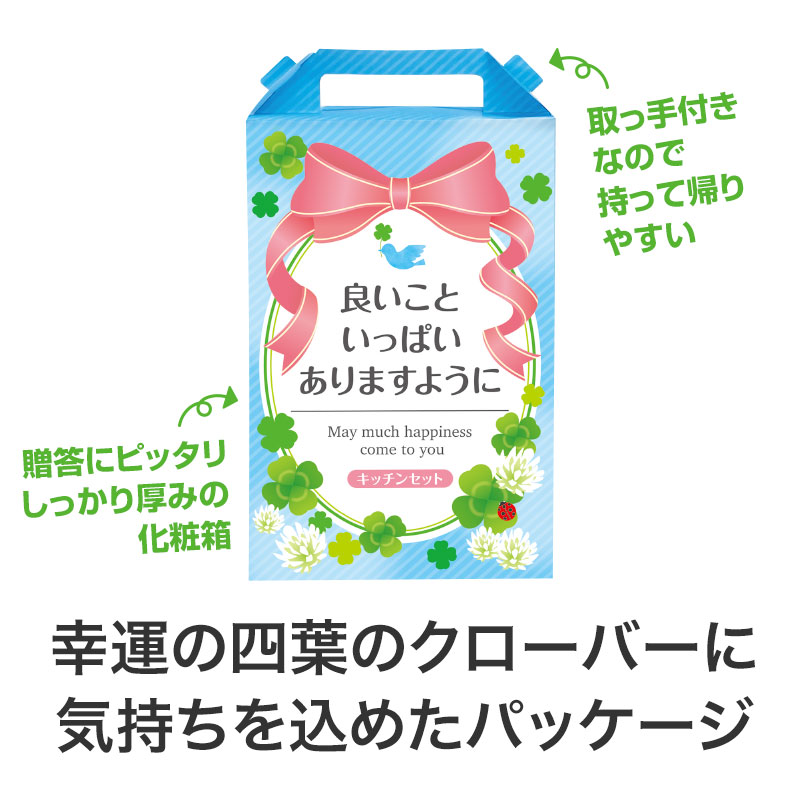 ”イベント 縁日 催物 抽選会” 『[数量限定]良いこといっぱいありますように キッチングッズ4点セット C』