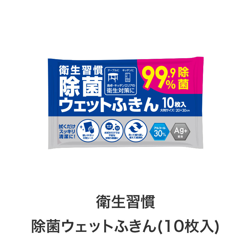 食品検査済(ミニまな板シート) 内容:キッチンロングスポンジ・ミニまな板シート・衛生習慣除菌ウェットふきん(10枚入)・キッチングローブ 各1
