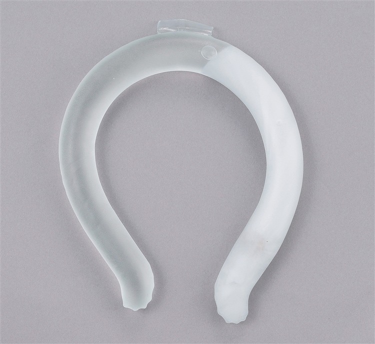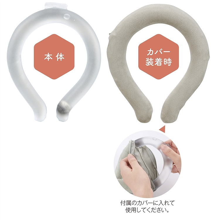 ぽかぽかネックリングは金属ボタンで発熱し、発熱が落ち着いた後は煮沸することで結晶から液体に戻るので、繰り返し何度も使うことができます。環境にも配慮したエコなアイテム。専用カバー付きなので、肌触りに関しても安心。カバーには名入れもできるので、秋冬のノベルティに最適です。