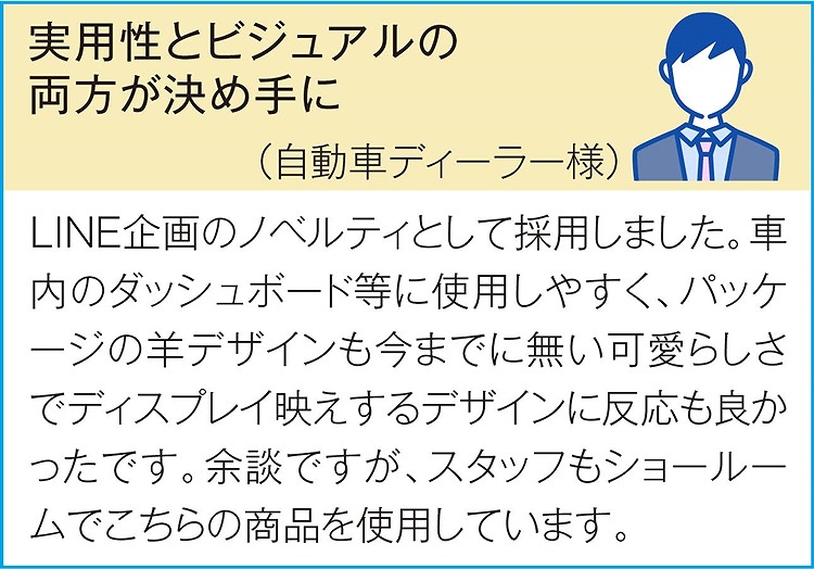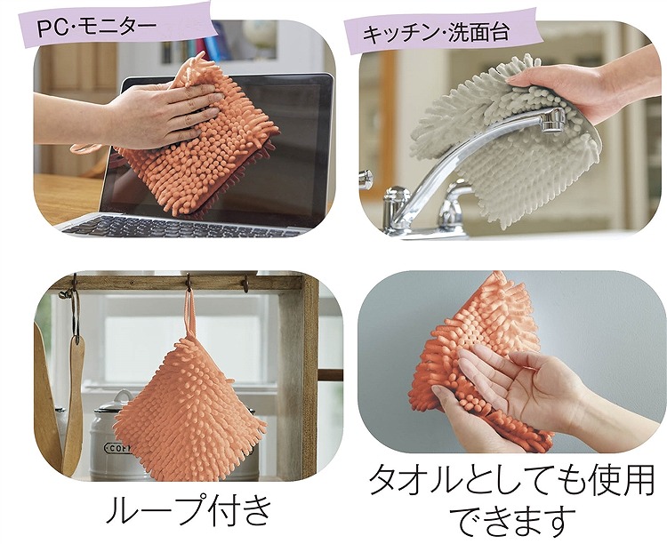 表と裏で毛足の長さが異なるもふもふお掃除クロスは、細かいほこりを見逃さないお掃除クロスです。モニターのほこり取りや水回りの拭き掃除に便利。吊り下げループ付きでお手拭きタオルとしても使用できます。可愛いひつじデザインで配布用ノベルティとしてもおすすめです。