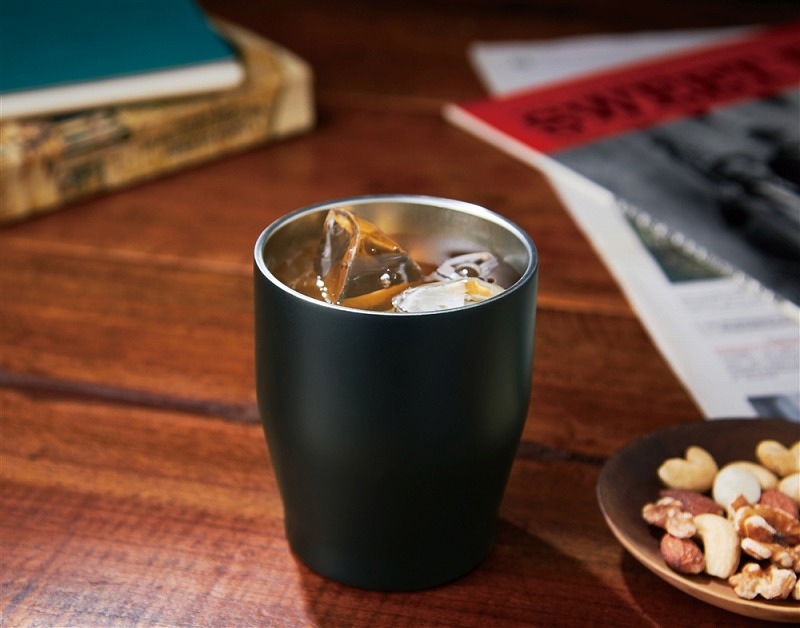 真空二重構造で保温・保冷に優れたタンブラー。シックで重厚感のあるブラックも人気のポイントです。口径が広いため、大きな氷も楽ー投入可能。結露せず、デスクにも安心して置けるので、あらゆるシーンで愛されるタンブラーです。ワンポイントのレーザー名入れが映えます。