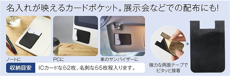ICカードなら2枚、名刺なら5枚ほど入ります。名入れもできるので展示会の配布にも最適です!