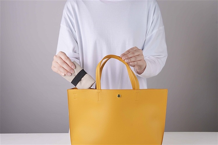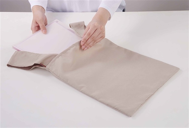 資料配布や教育機関向けに最適なA4トートです。付属バンドでくるっとコンパクトにまとめられて小さく携帯できます。シックなスエード風生地を採用。名入れすればノベルティや販促品に最適。使用するたびに知名度がアップします。