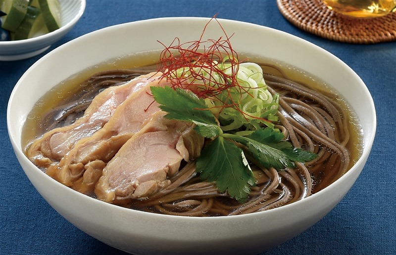 具は歯応えのある鶏肉とネギがメインで、つゆは鶏だしで、脂が固まらないまま、冷たく美味しく食べられるのが一般的です。もちろん温かくしても美味しくお召し上がりいただけます。