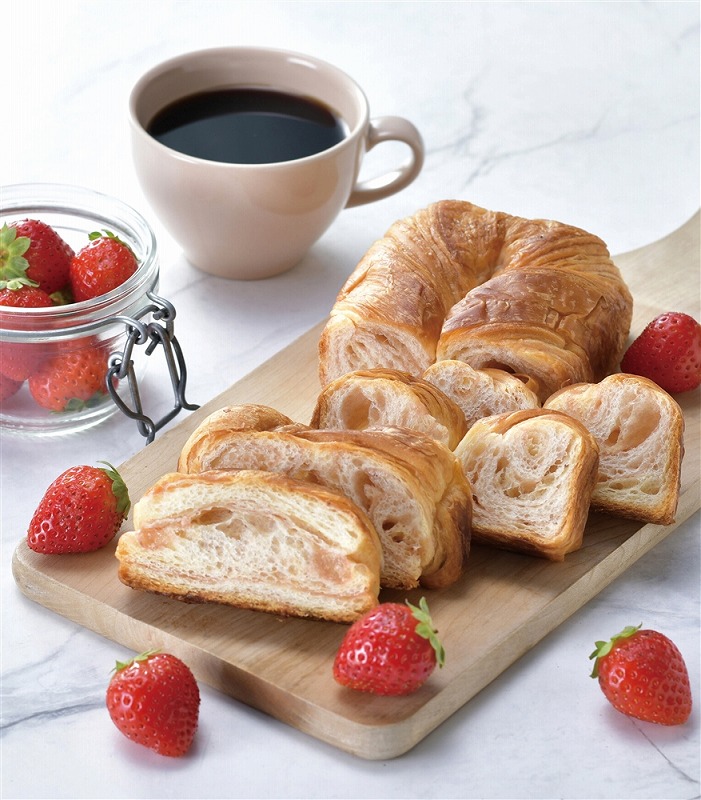 81層に織り上げた生地を1本1本三つ編みにする製法で焼き上げたいちご風味のデニッシュです。