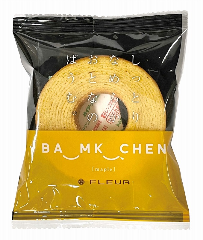 メープル生地を練りこんだ個食バウムクーヘンです。