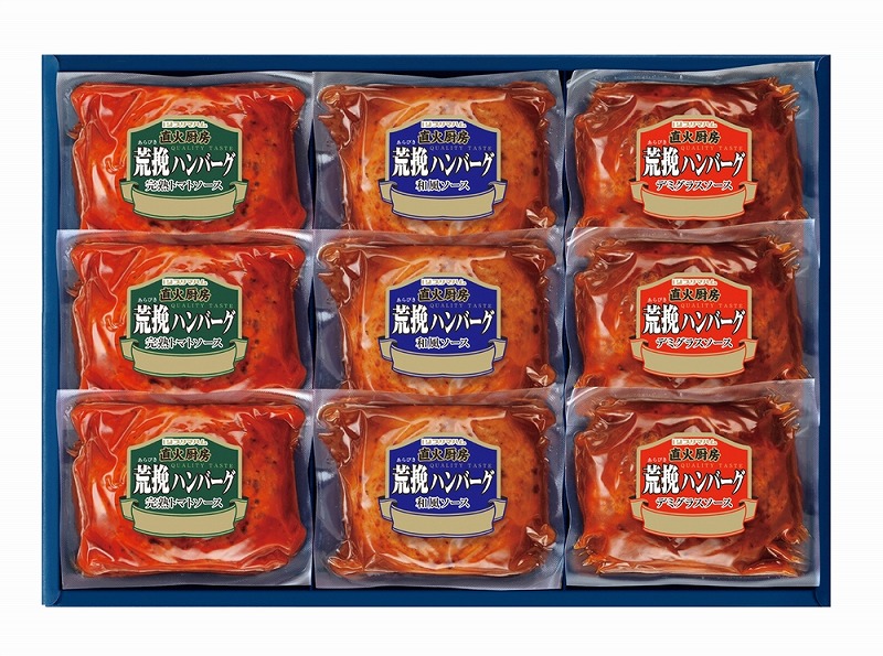 [セット内容] 荒挽ハンバーグ120g×9(デミグラスソース×3、完熟トマトソース×3、和風ソース×3)