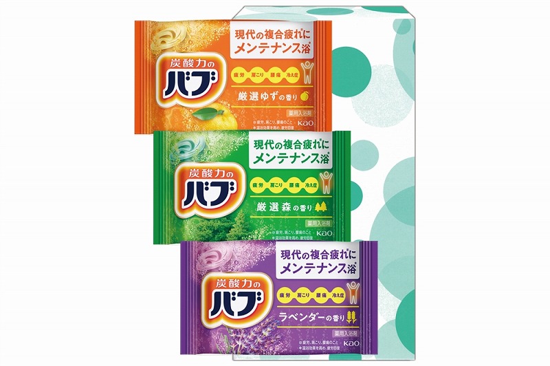 「炭酸力」が温浴効果を高めて血行を促進し、疲労・肩こり・腰痛・冷え性に効果があります。バブの定番でロングラン商品であるゆず・森をベースにし、やすらぐラベンダーの香りを組み合わせました。